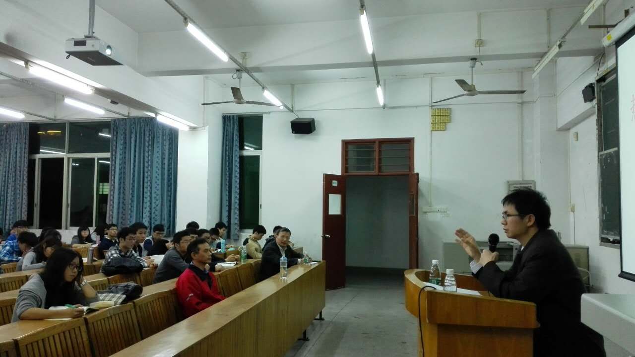 丁教授首先从制定十三五规划的背景、坚持经济建设为中心等方面对党的十八届五中全会精神作了深入的解读,具体从“十八届五中全会体现党的责任和担当”、“准确把握十八届五中全会精神”、“正确理解十三五规划的发展速度”、“十三五规划的指导思想”、“十三五规划的六大原则”、“十三五的五个发展理念”等六个方面,展开分析和报告。丁教授结合学生的专业特点,进一步阐明理论创新、制度创新、文化创新以及科技创新之间的相互关系,联系大众创业,万众创新、互联网+等时事热点,强调了作为高水平的大学生必须具备创新型的特点。丁教授同时强调大学生要从理论高度重视学习党的理论,关注时事政治,找准个人专业发展的契合点,把个体成长与国家、社会整体发展的大环境紧密结合。在报告中丁教授多次与学生互动,及时提问或回答学生的问题,高度肯定我校学生的政治素养。他以详实的数据、严谨的分析、幽默的语言,获得在场师生阵阵热烈的掌声。报告会在融洽的气氛中结束。