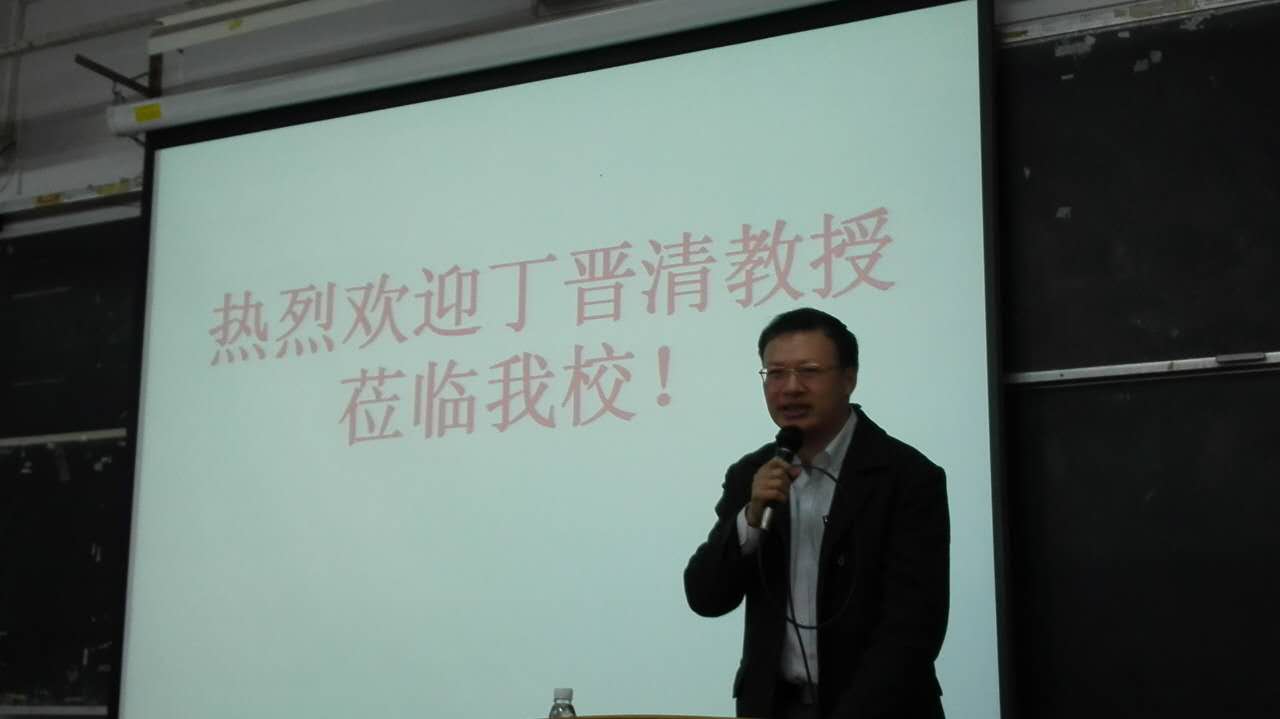 11月29日晚,广东省委宣传部理论处处长丁晋清教授来到海珠校区教学楼B501课室,给我校学生带来了一场深入浅出、内容丰富同时紧贴时事的《准确把握十八届五中全会精神》的辅导报告。15vip太阳成集团院长蔡立彬教授、总支书记翁礼成教授,形势与政策课教研室主任张颖博士,以及人文社会科学学院、信息科学与技术学院学生共180人参加了这次报告会。