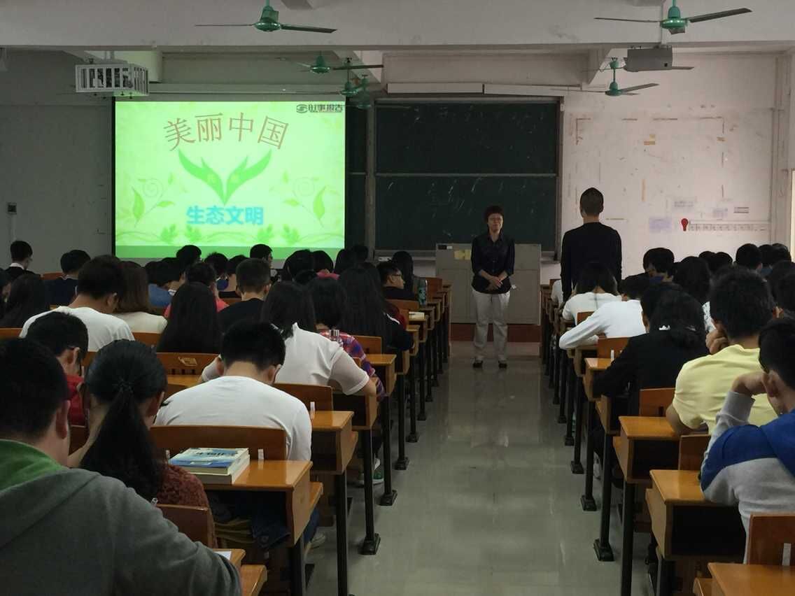 向书记首先淡了对“Ecology”生态学一词的认识和理解,同时与学生互动,从而引出本期讲授的主题—生态文明托起美丽中国。她从“生态文明的内涵与意义”、“我国生态文明建设历程”“存在的问题”等几个方面进行了详细的讲解。