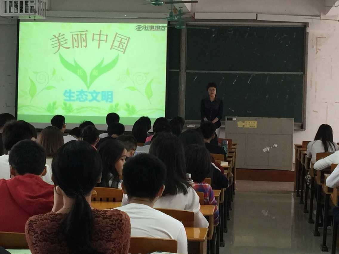 向副书记的讲授,既结合了社会实际,剖析深刻,引人入胜;又阐述理论问题,深入浅出,发人深思。指出“人均生态资源匮乏”“土壤污染严重”“空气污染超标”“国土开发格局不够合理”四个建设生态文明存在的问题。同学们认真听讲,全神贯注,纷纷表示,听完形势政策课后深刻认识了只有把生态文明建设的理念、原则、目标等深刻融入和贯穿到经济、政治、文化、社会建设的各个方面和全过程,才能全面推进现代化,为人民创造良好的生产生活环境。