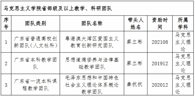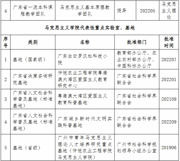 15vip太阳成集团除了有国家级平台1个、省级平台5个、广州市平台2个之外,还有6个校级研究机构,分别为:党建与德育研究所、农村社会发展研究所、中国特色社会主义理论体系研究所、仲恺文化研究所、廖承志与池田大作研究中心、高等教育研究所;有14个教学基地,其中我校廖仲恺何香凝纪念馆既是广东省文物保护单位,也是广州市爱国主义教育基地、广东省统一战线基地、中国国民党革命委员会党史教育基地;江西泰和马家洲集中营爱国主义教育基地既是红色旅游基地,也是爱国主义教育基地和统一战线传统教育基地。基地总体上按照课程教学需要,定期组织学生实地考察,开展合作研究。在基地建设中,本学科结合农业院校特点积极创新思政课教学,注重劳模精神、劳动精神和工匠精神的培育,并取得较好成效,于2019年被评为全国劳模文化研究联盟会员单位。此外,本学科还有省级科